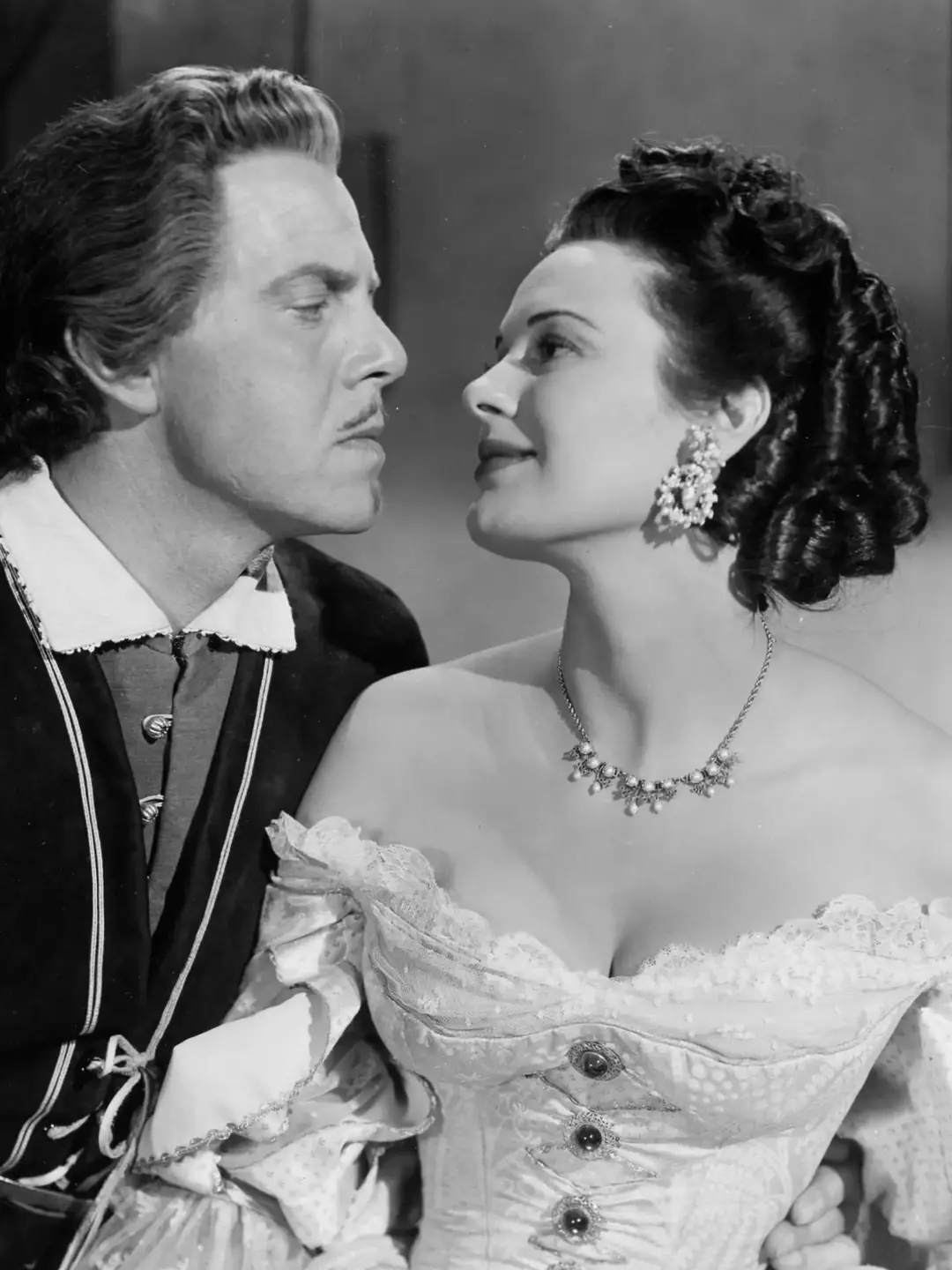 They first appeared on Rita Hayworth as Gilda in the 1946 film of the same name, going on to be worn again with a different top portion in 1950 by Patricia Medina as Isabelita Sotomayor in Fortunes of Captain Blood.