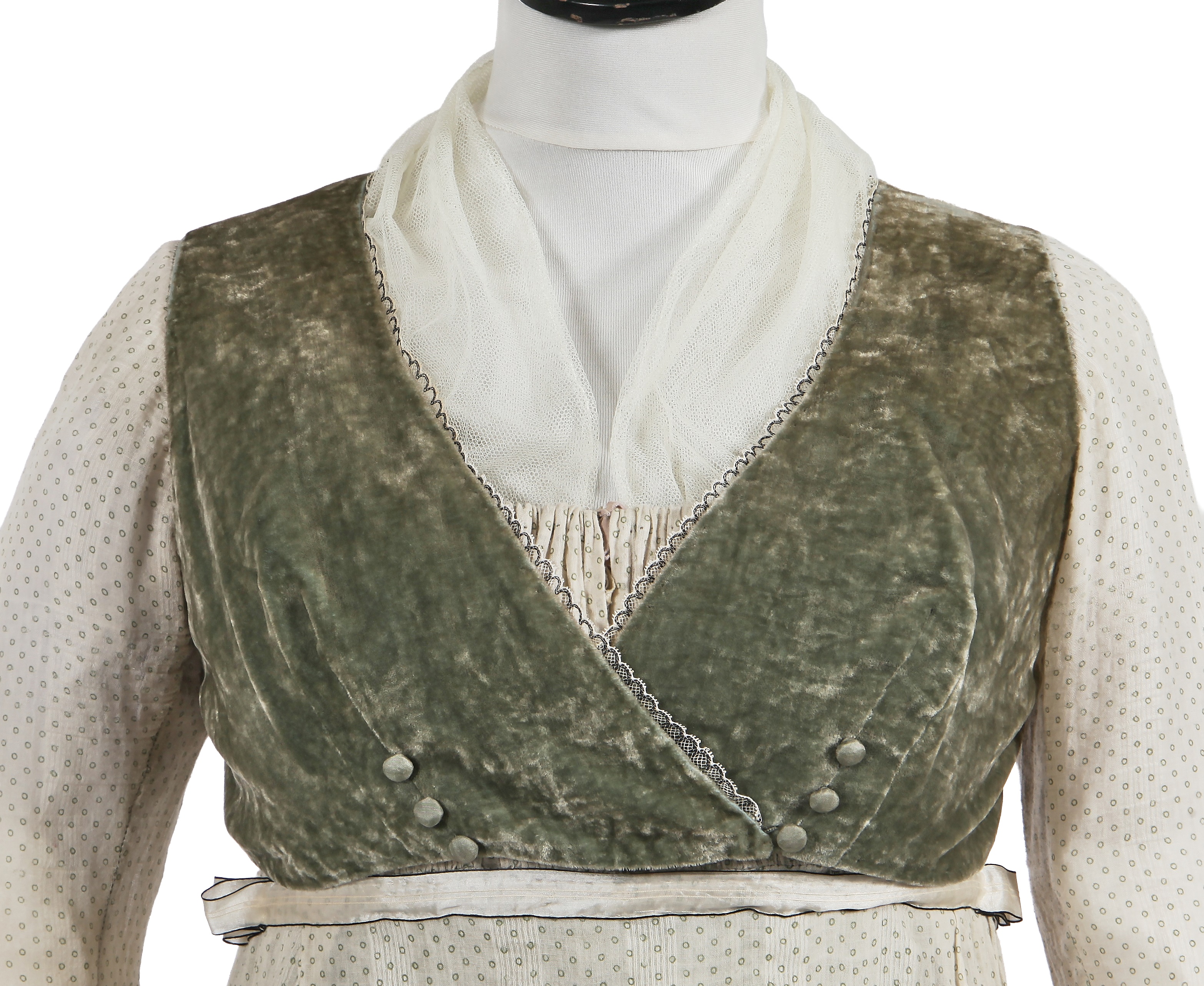 This sleeveless velvet spencer/lady-waistcoat will be auctioned off next week together with the dress Kate Winslet wore under it in the originating production of S&S: