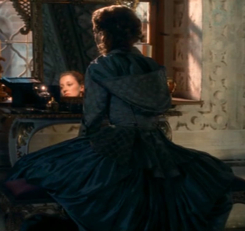 This hooded dress was first worn by Alexandra Maria Lara as Princess Anna Amalia of Prussia in 2002’s Trenck – Zwei Herzen gegen die Krone (Trenck – Two Hearts Against the Crown).