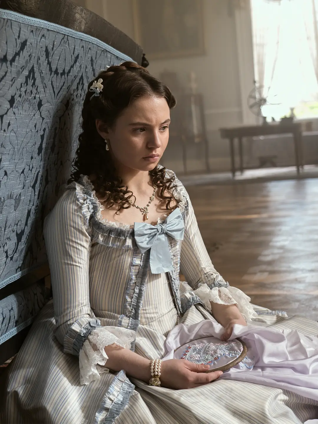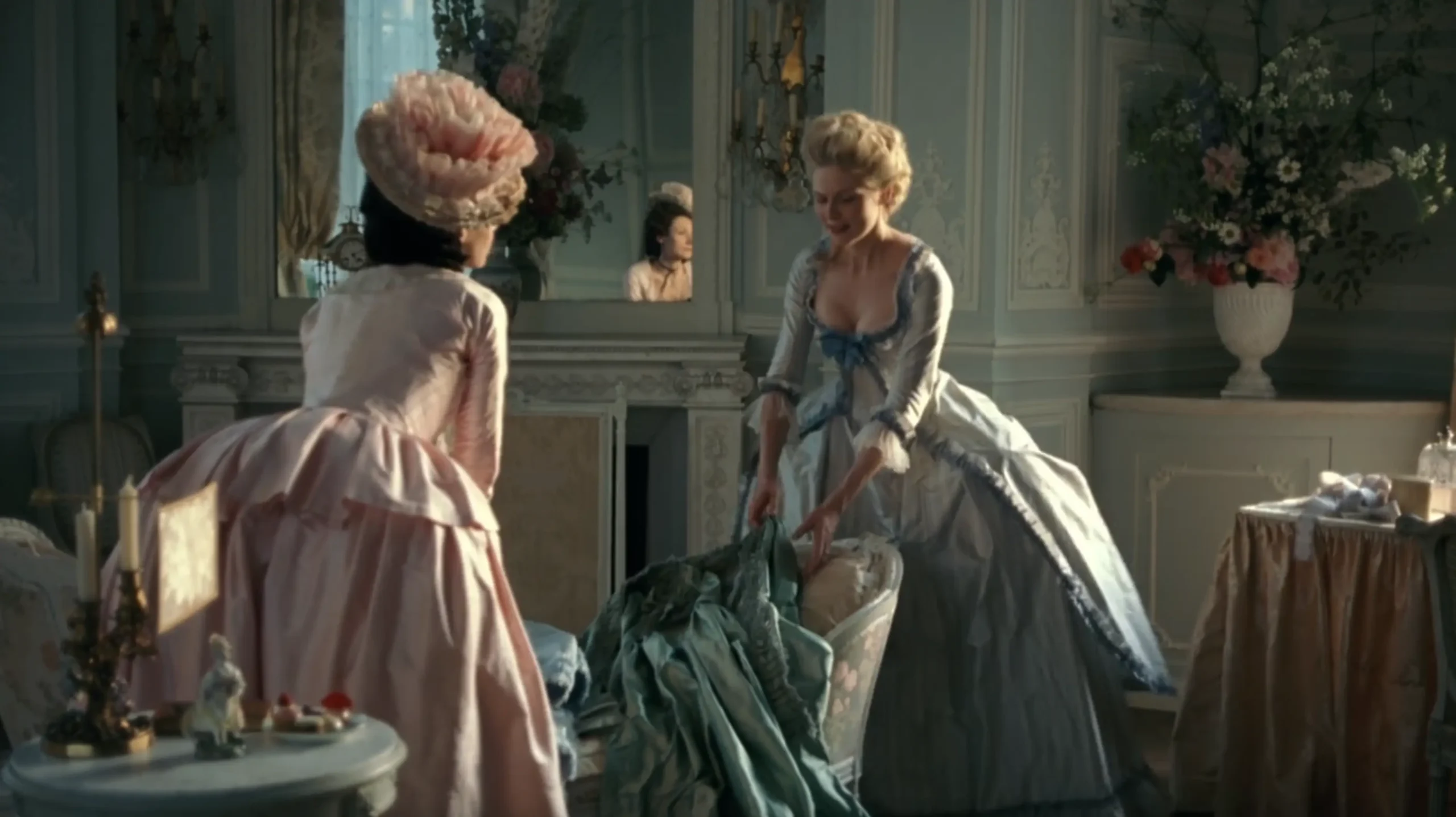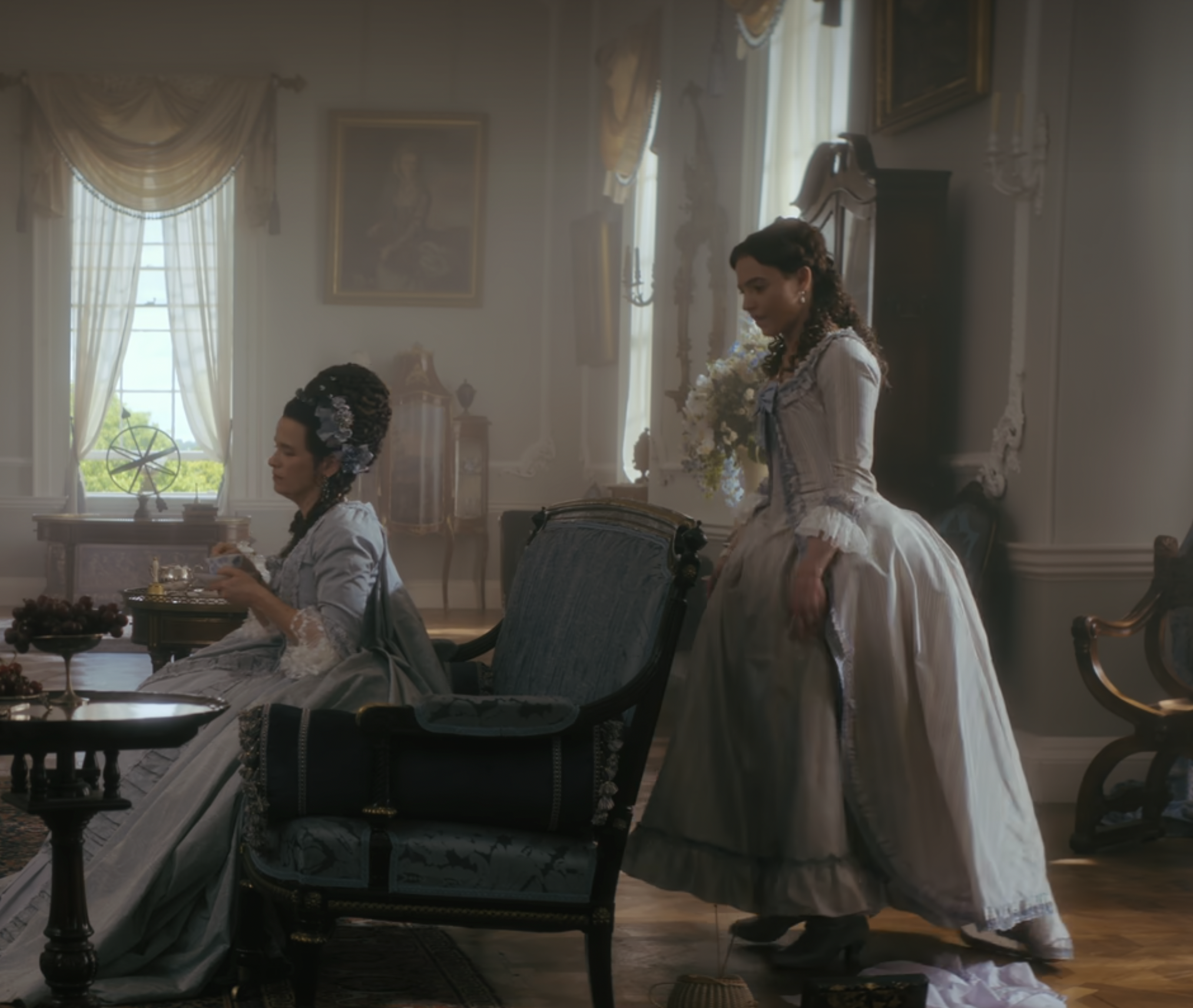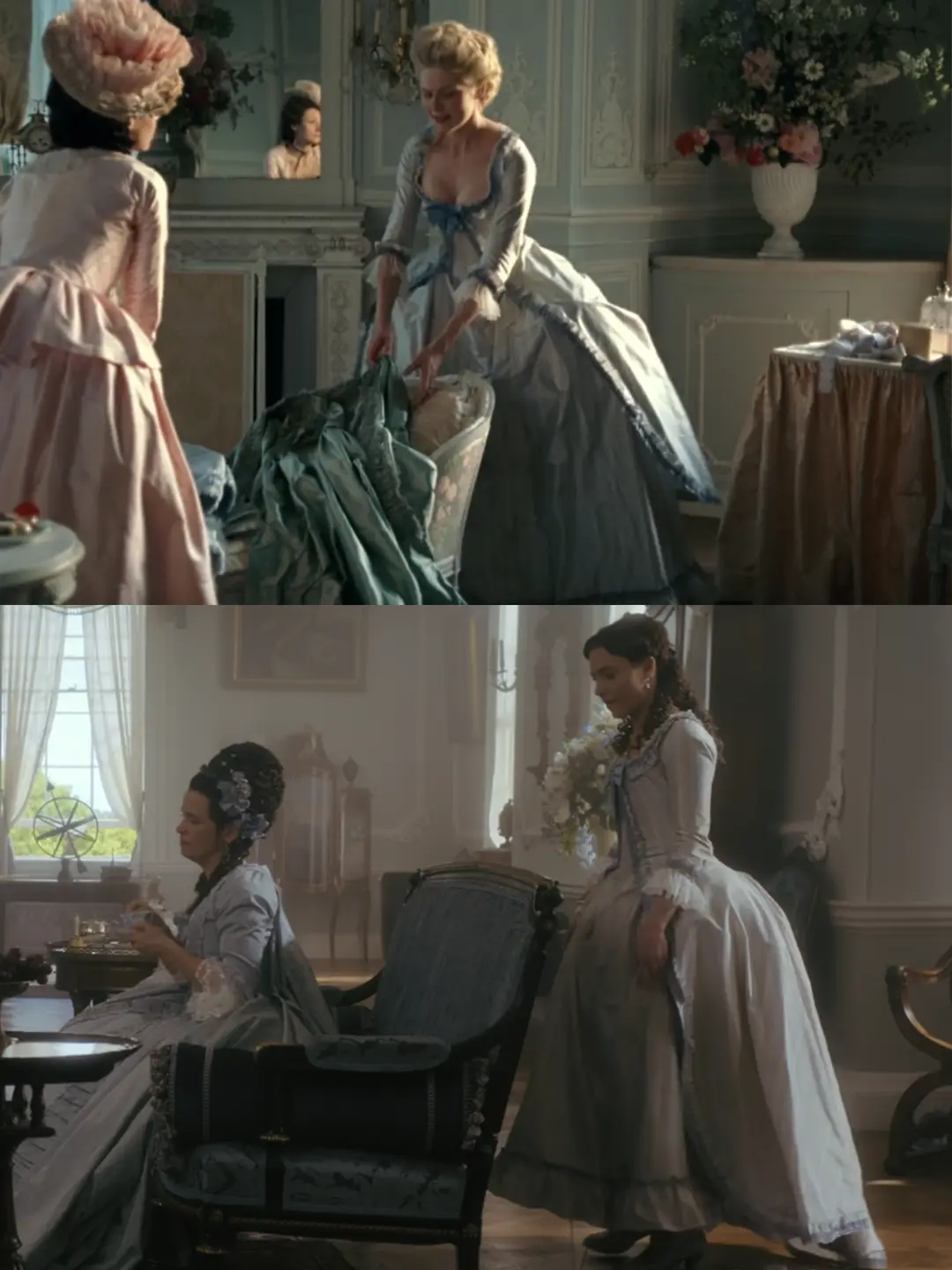 I see what you mean. I also go back and forth seeing it whether it’s the same or not but since Queen Charlotte also used the maids’ uniform, I agree with you towards leaning it being the same dress. I think we might also have another reuse now that you mention it: This dress/jacket from Marie Antoinette might be the same as this one worn by Violet, just more open.