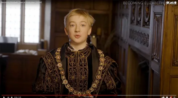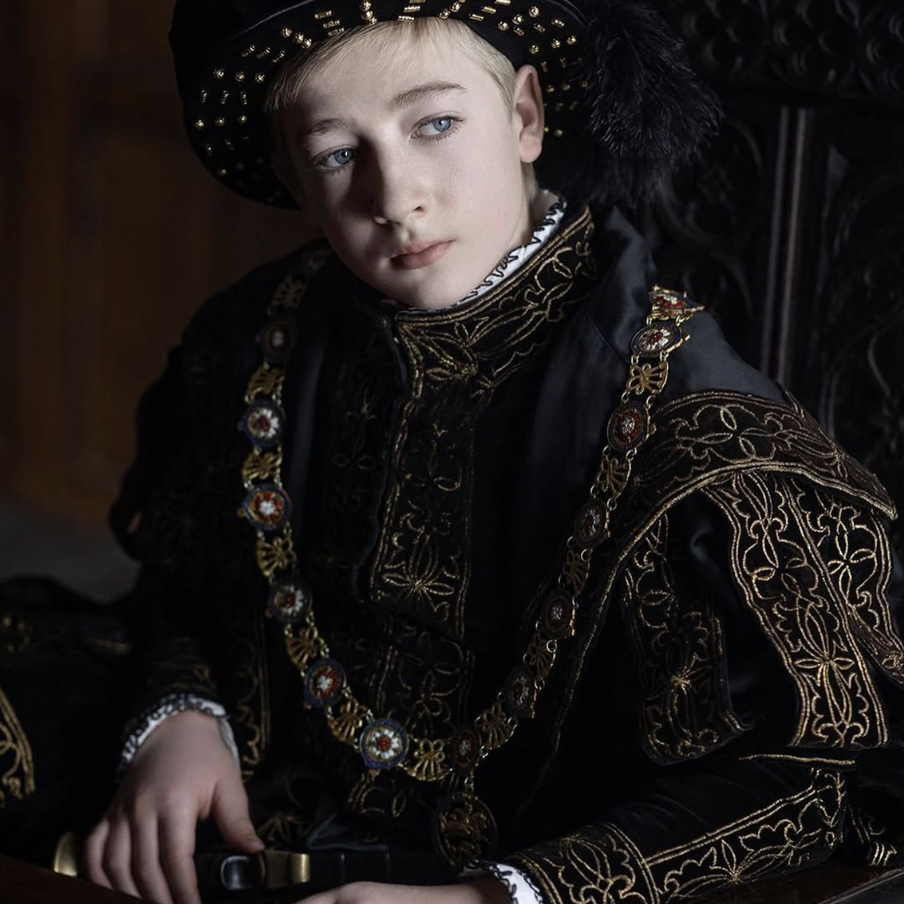 The costume was used again with the jewels removed in the wonderfuly costumed, but short lived Becoming Elizabeth, where it was worn by Oliver Zetterström as Edward VI.